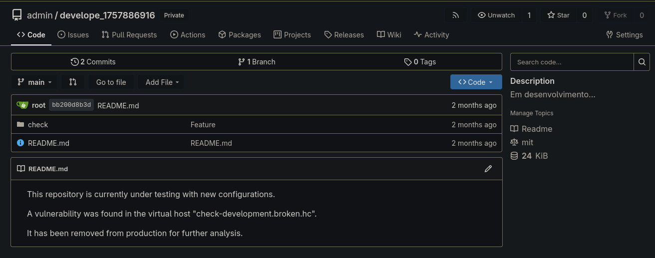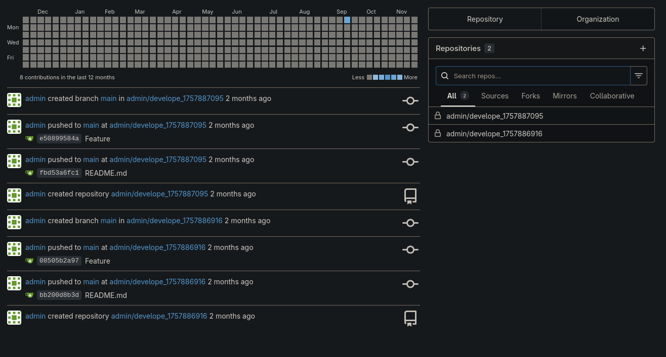 - Gitea Access: Logged into Gitea with admin credentials