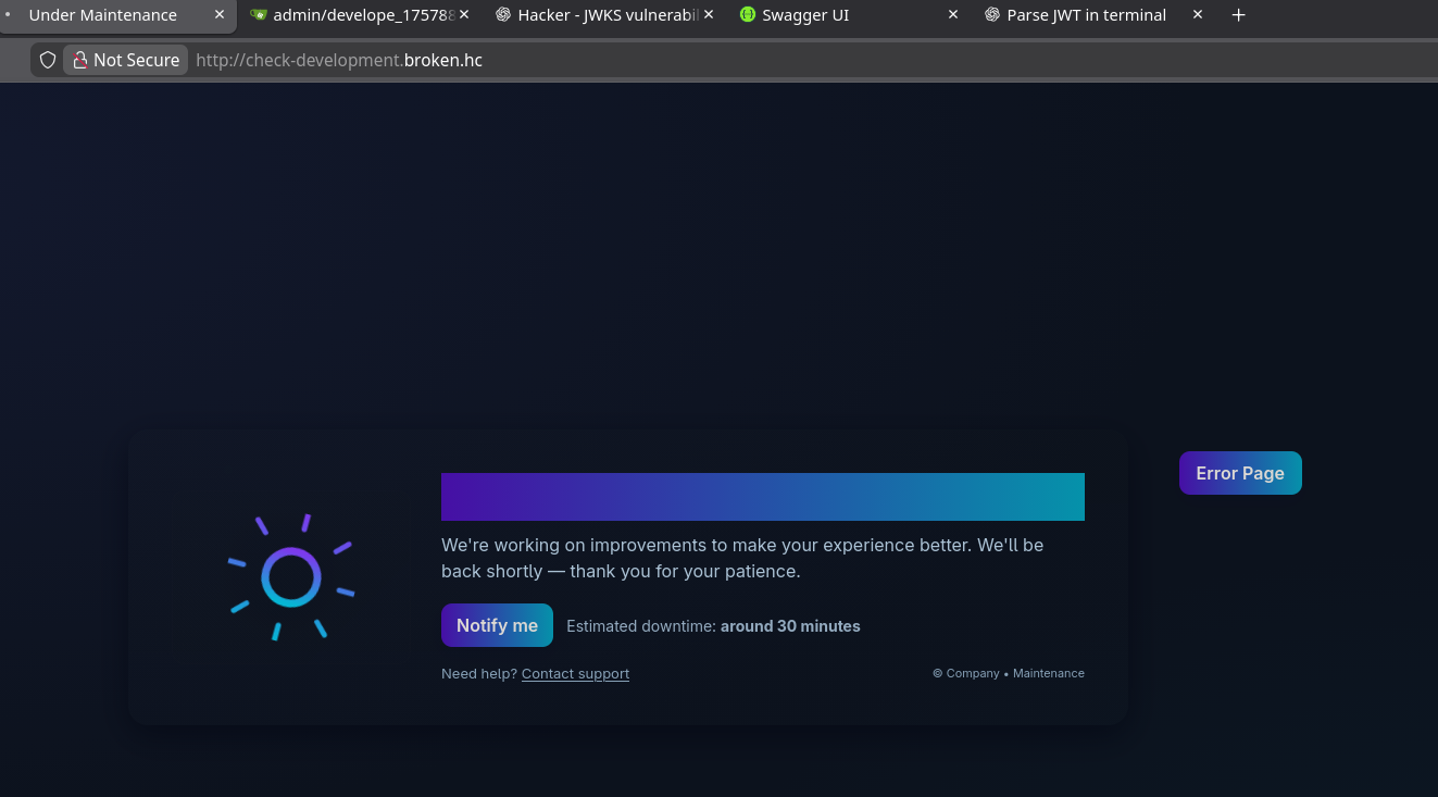 The main site is under maintenance, so we need to enumerate subdomains to find other attack surfaces.