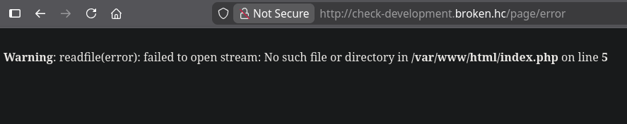 check-development.broken.hcwith file read vulnerability - CRLF Injection: Exploited file read vulnerability via CRLF injection to achieve SSRF and command injection