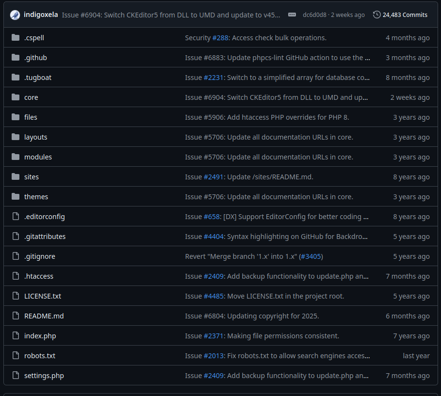 Since it is an open-source CMS, we can search for the files present in the web server. Looking at the source code of the page, we can see that there is a robots.txt file, LICENSE and README.md files.