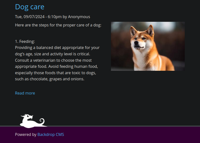 Looking at the bottom of the page, we can see that the web server is running with the Backdrop CMS, which is an open-source content management system (CMS) designed for small to medium-sized websites.