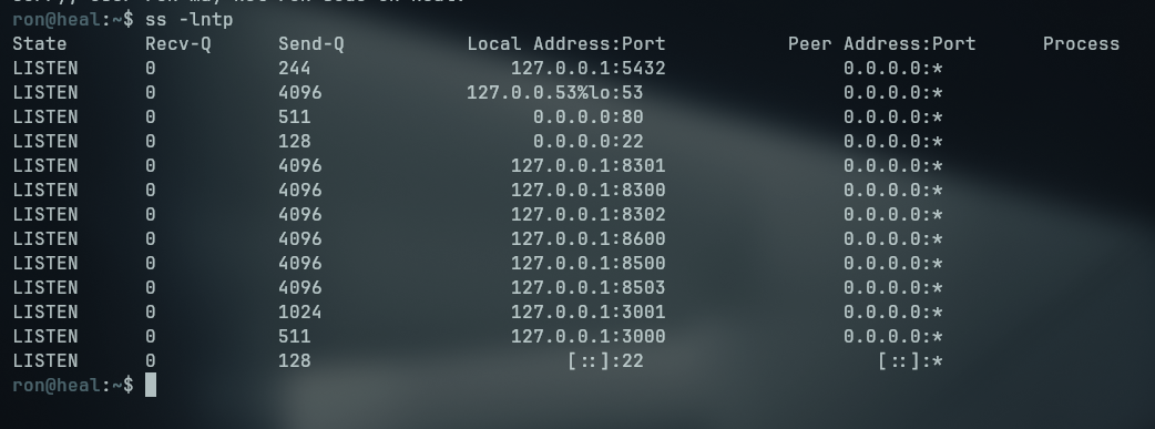 ss -lntp